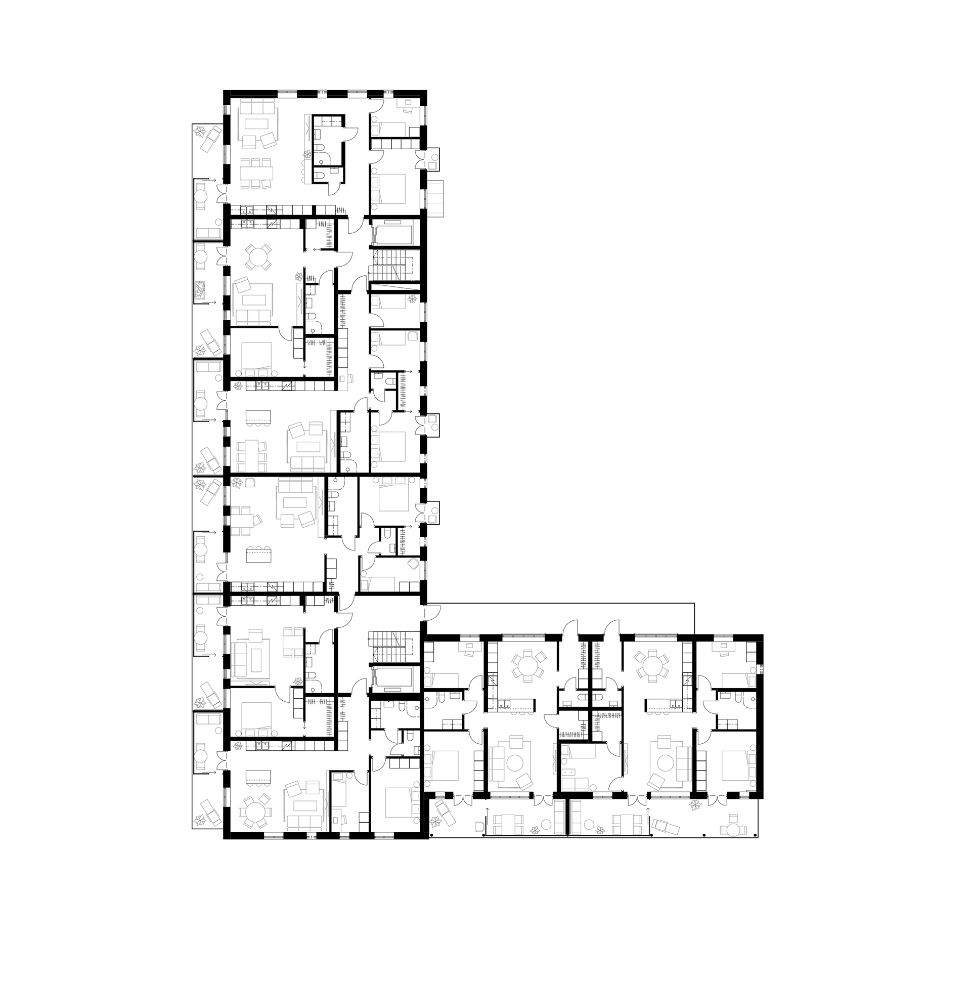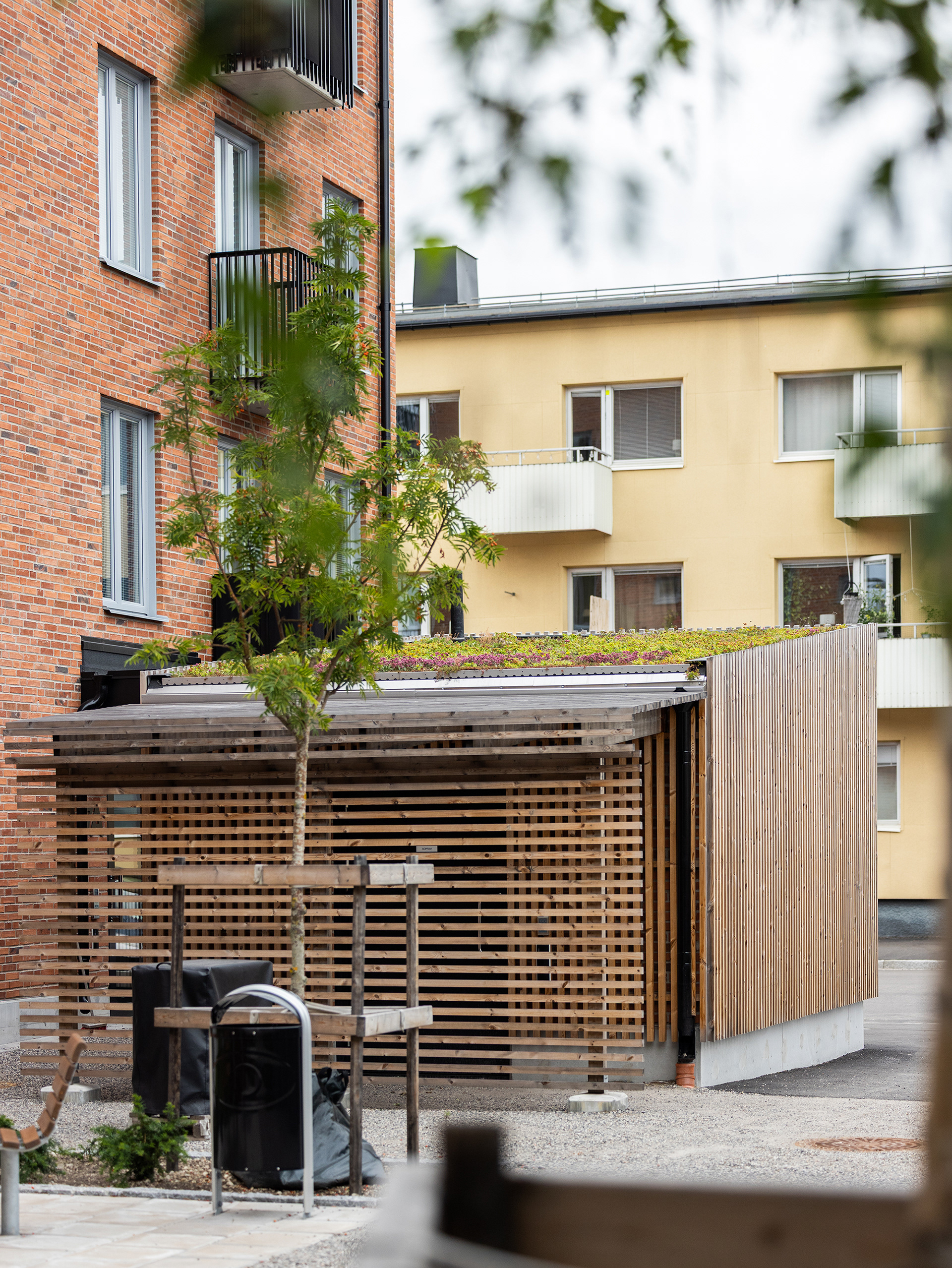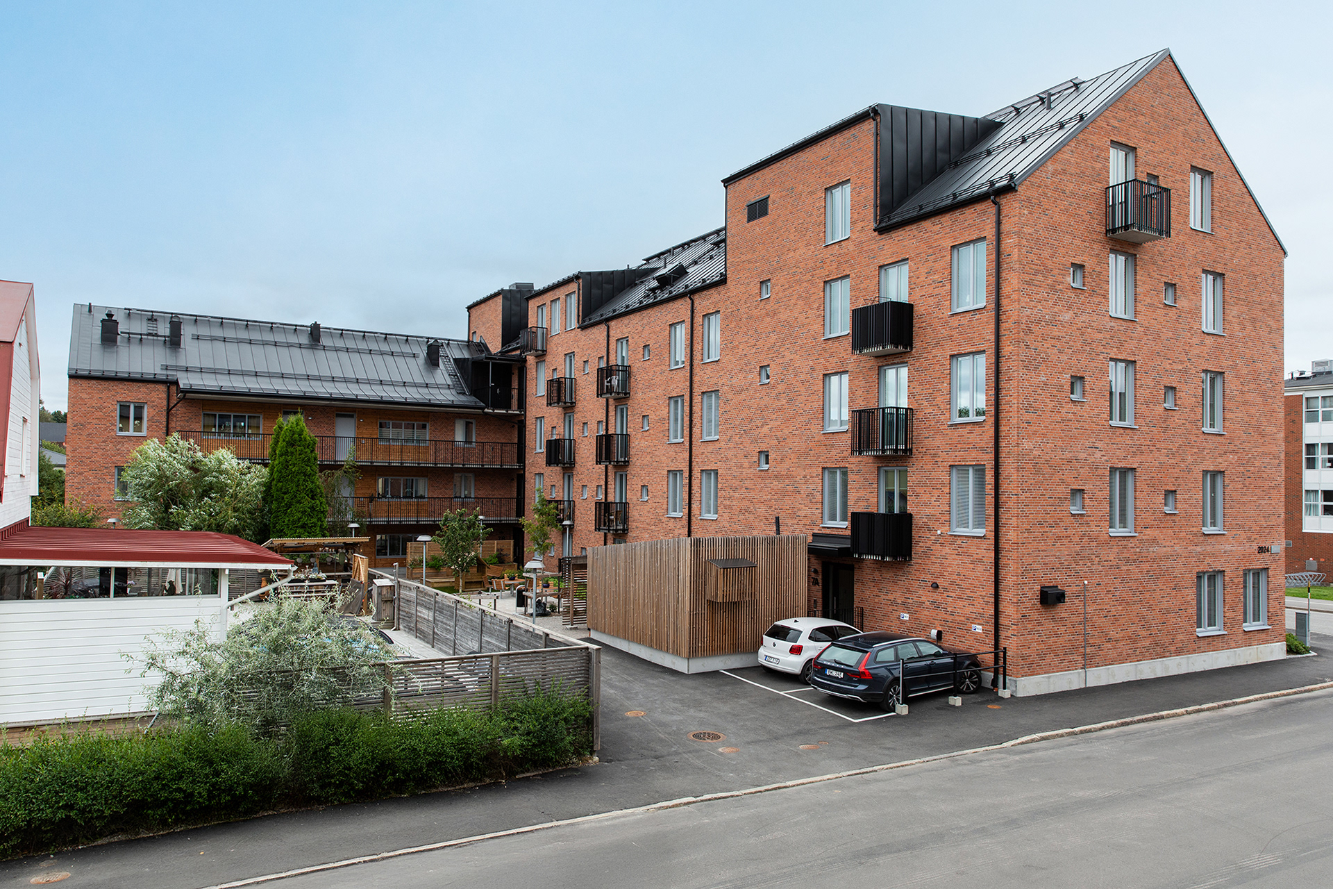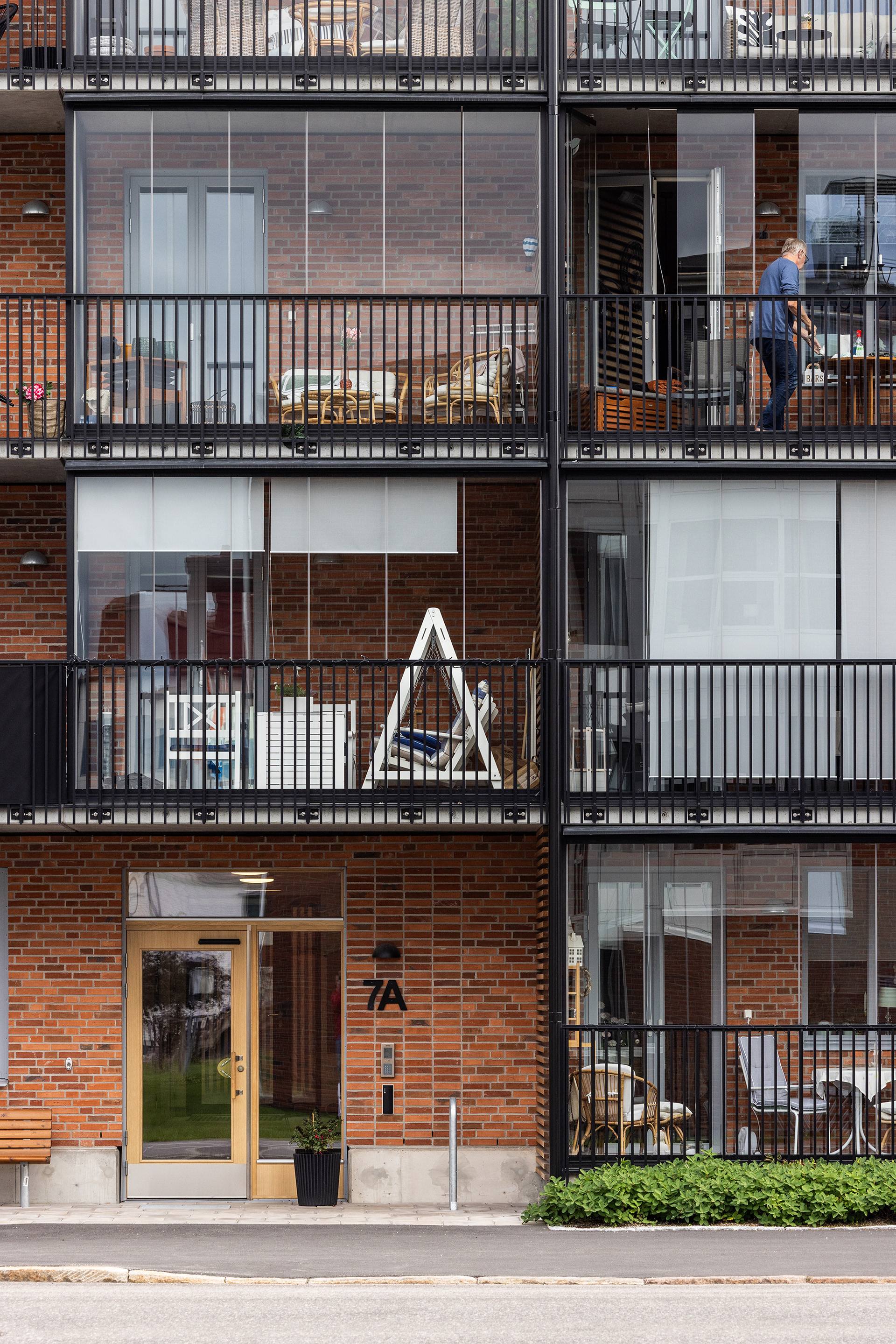 Generösa balkonger ger varje lägenhet en tydlig koppling till omgivningen och förlänger livet utomhus. Sovrum och mindre frukostbalkonger vetter mot den lugna gården, som erbjuder plats för odling och sociala möten. Vardagsrum och kök ansluter till en större västbalkong som fångar kvällssolen.